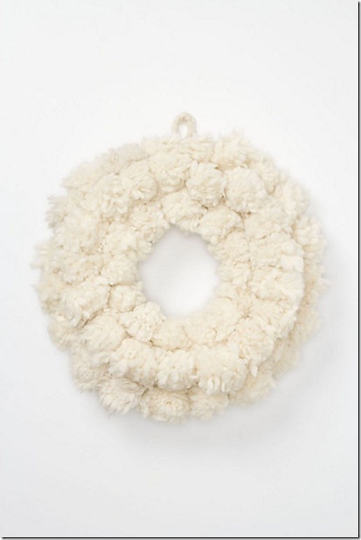 I’m sure you’ve seen the awesome wool tufted wreath that Anthropologie had and noticed it being copied a lot in blogland this year. I’d been keeping my eye on it.