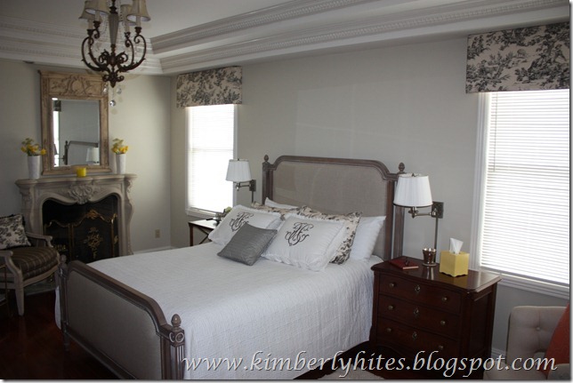 Custom toile padded cornices that I used at a previous home and decided to keep in storage. I’m sure glad I did!