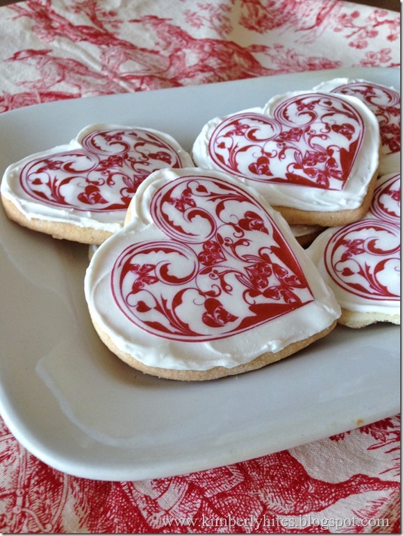 I don’t really do any decorating for Valentine’s Day but I made these cookies using wafer paper. It’s my first time using these edible papers and I couldn’t resist the toile pattern!